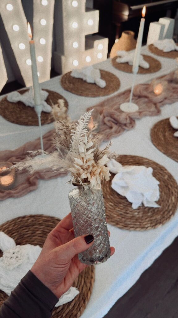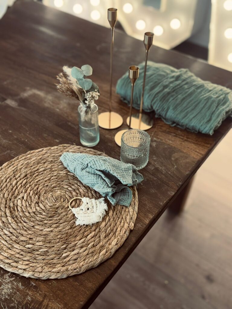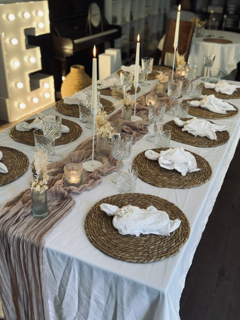 Die Leihartikel werden vom Kunden gereinigt zurückgegeben. Textilien können in der Waschmaschine gewaschen und im Trockner getrocknet werden -Vasen & Dekoelemente sind spülmaschinenfest.